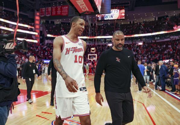 火箭队前一场107:105主场险胜新奥尔良鹈鹕队。虽然申京缺阵,但火箭队还是艰难地拿下了本场比赛。这场比赛火箭队的老将电风扇,也就是前锋多利安芬尼史密斯得到了首发的机会,这也是他加盟火箭队之后,第1次为球队先发出战。在比赛当中,火箭队的芬尼史密斯虽然进攻端表现不佳,三分球3投0中,但是在防守端和抢篮板方面他做得不错,全场0分4篮板,还送出了2次助攻1盖帽2次抢断。